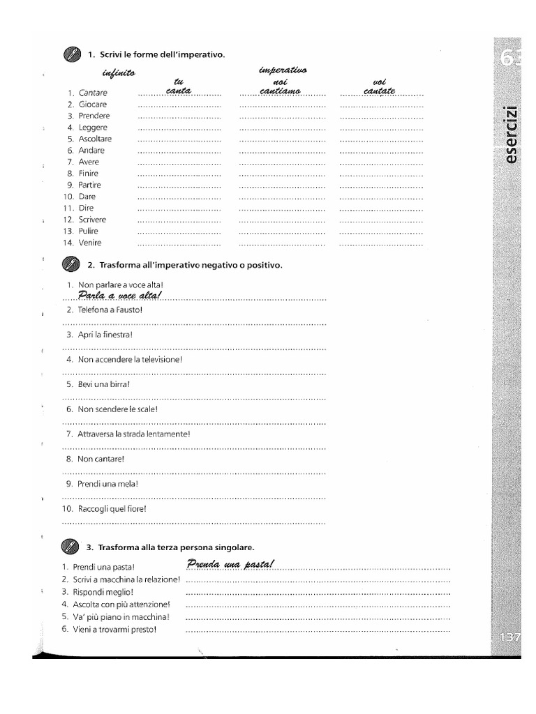 4)(tu prendere) …………………….i soldi per fare la spesa!