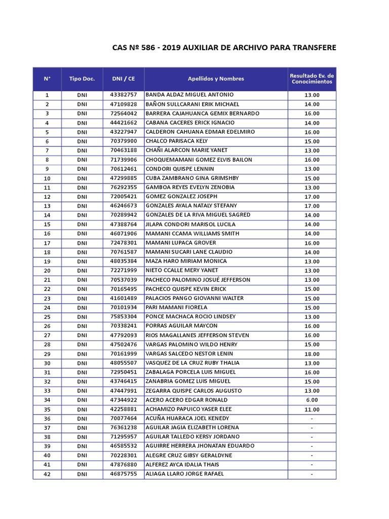 CAS Nº 586 - 2019 AUXILIAR DE ARCHIVO PARA TRANSFERENCIAS