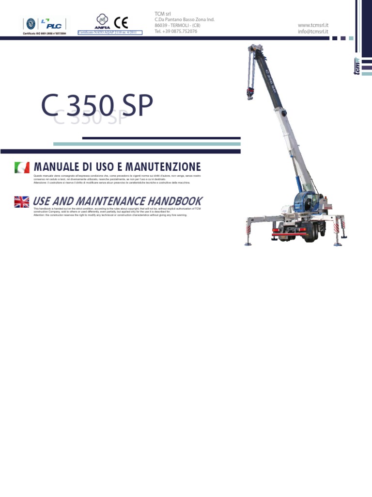 IMPORTANT: This handbook is to be kept inside the crane manoeuvre cabin, in order to be always available, as required