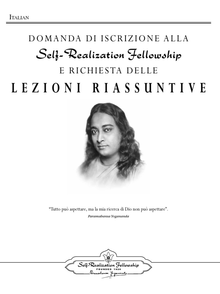 Se desidera ricevere la serie completa delle Lezioni della Self-Realization Fellowship, che sono disponibili in inglese,