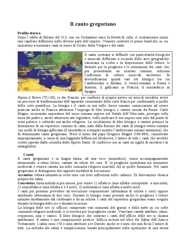 culturale e spirituale comprensiva dello studio dei canti del repertorio gregoriano che si