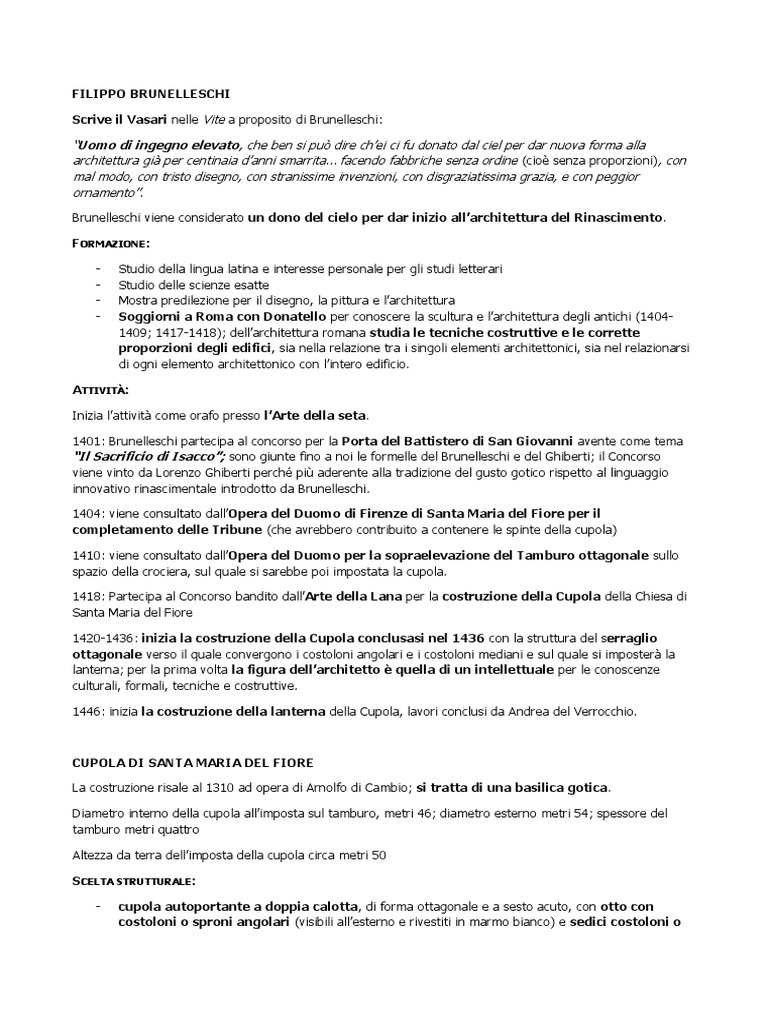 Scrive il Vasari nelle Vite a proposito di Brunelleschi: