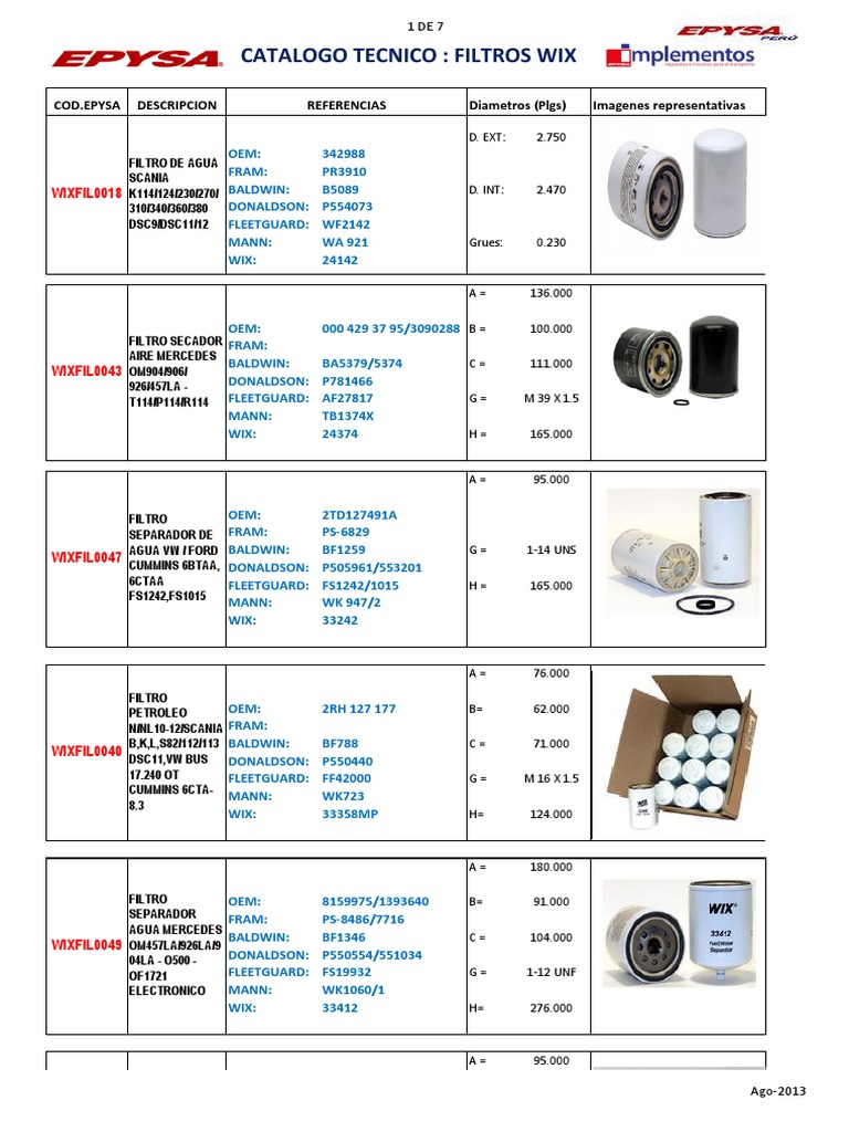 CATALOGO TECNICO : FILTROS WIX