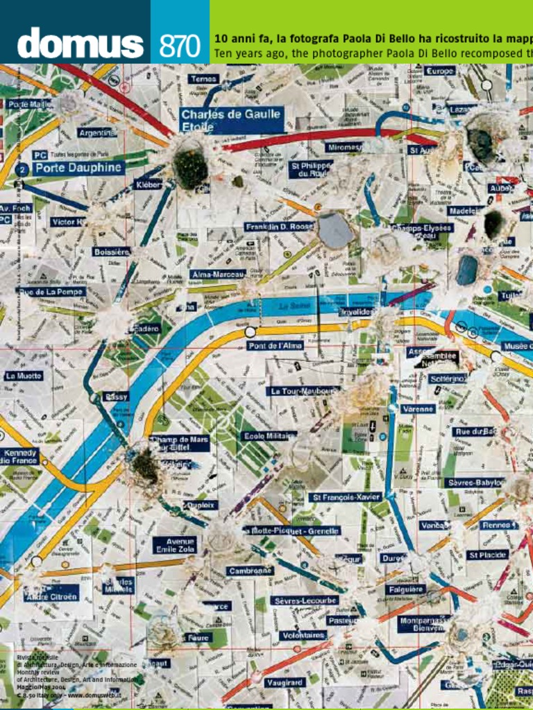 870 Ten years ago, the photographer Paola Di Bello recomposed the Paris subway map into a collage of hundreds of small colour photographs. Each shows the spot on the locator maps one finds in every metro station where passengers place their finger