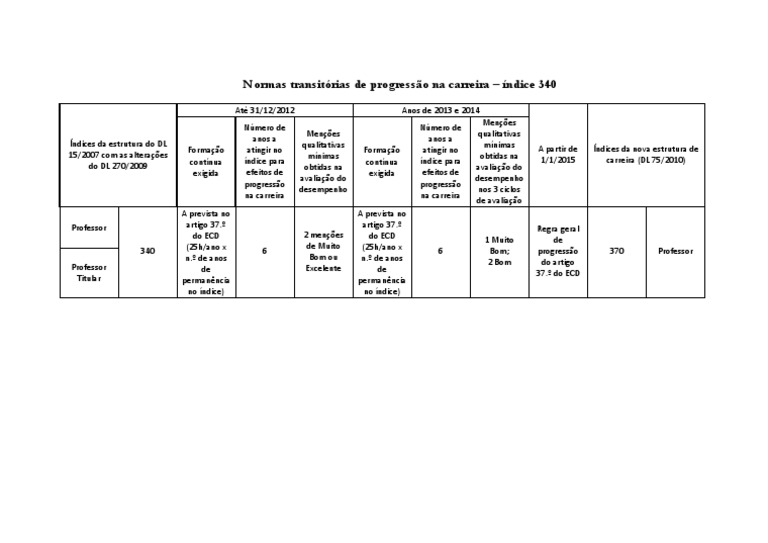 Normas transitórias de progressão na carreira – índice 340