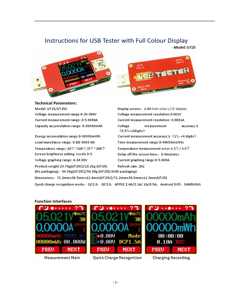 Model: UT25/UT25C Display screen:1.44 Inch color LCD display