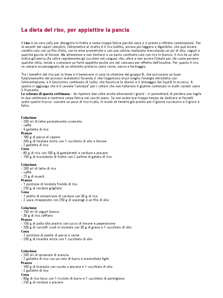 qualche chilo, tende a scatenare un forte appetito poche ore dal consumo per effetto dell'insulina. Per questo il riso