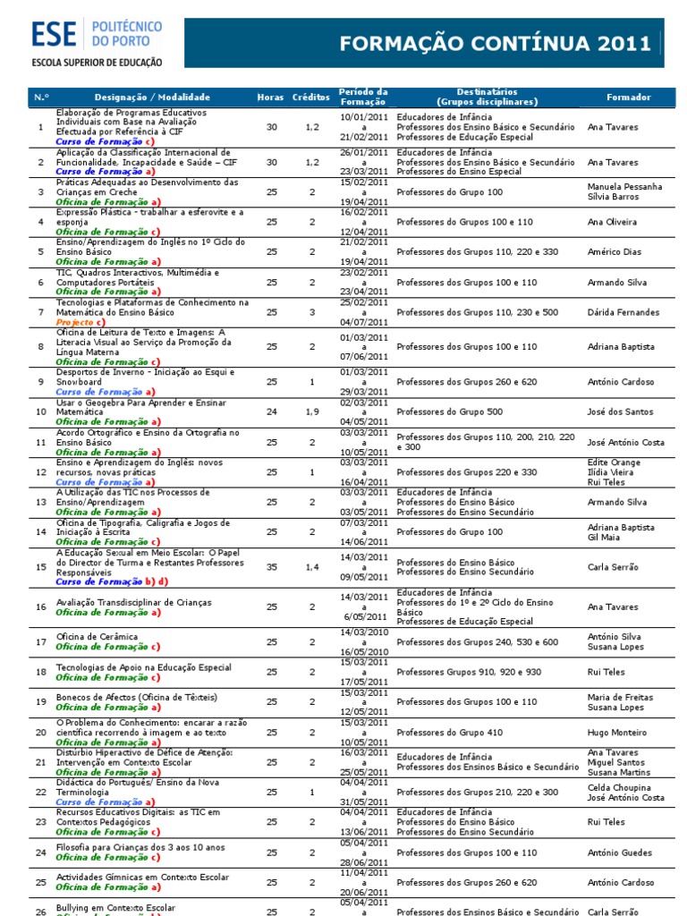 Ensino Básico Oficina de Formação a) |