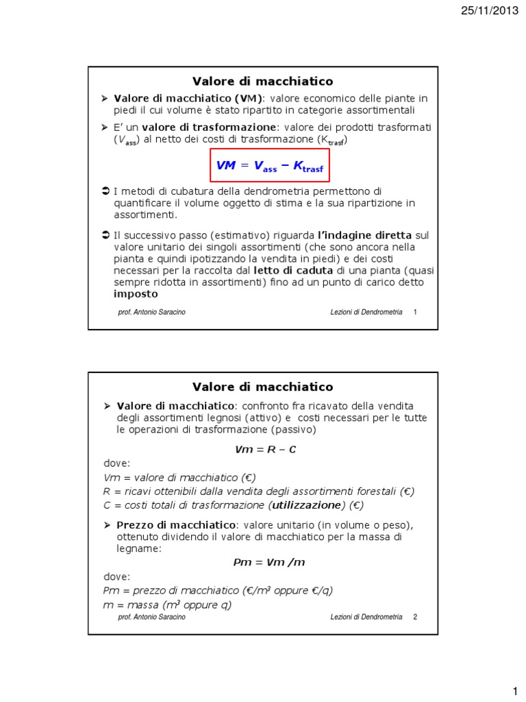 Vm = valore di macchiatico (€)