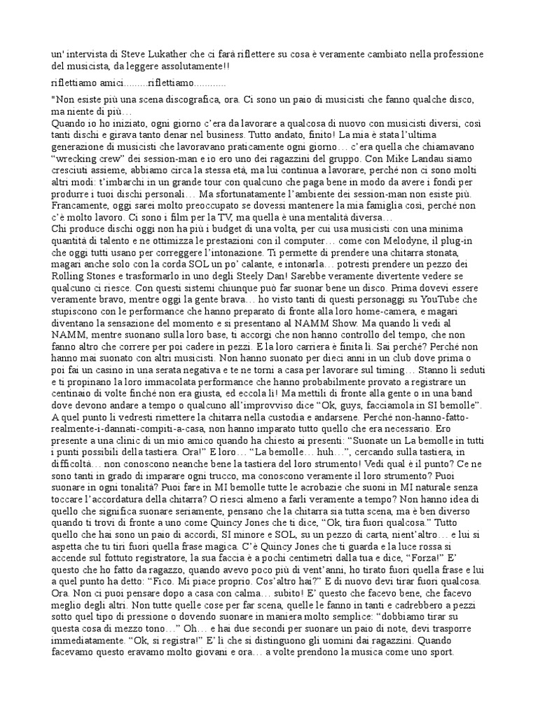 un' intervista di Steve Lukather che ci farà riflettere su cosa è veramente cambiato nella professione