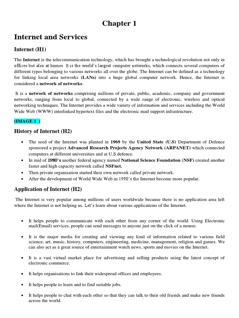 networking techniques. The Internet provides a wide variety of information and services including the World