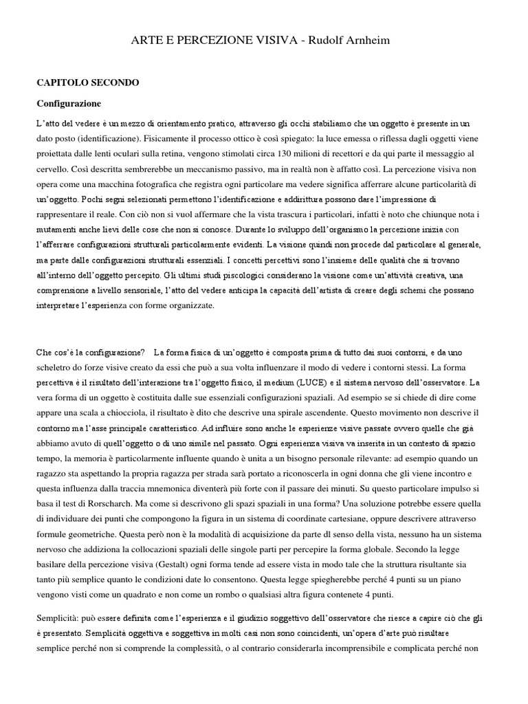 all’interno dell’oggetto percepito. Gli ultimi studi piscologici considerano la visione come un’attività creativa, una
