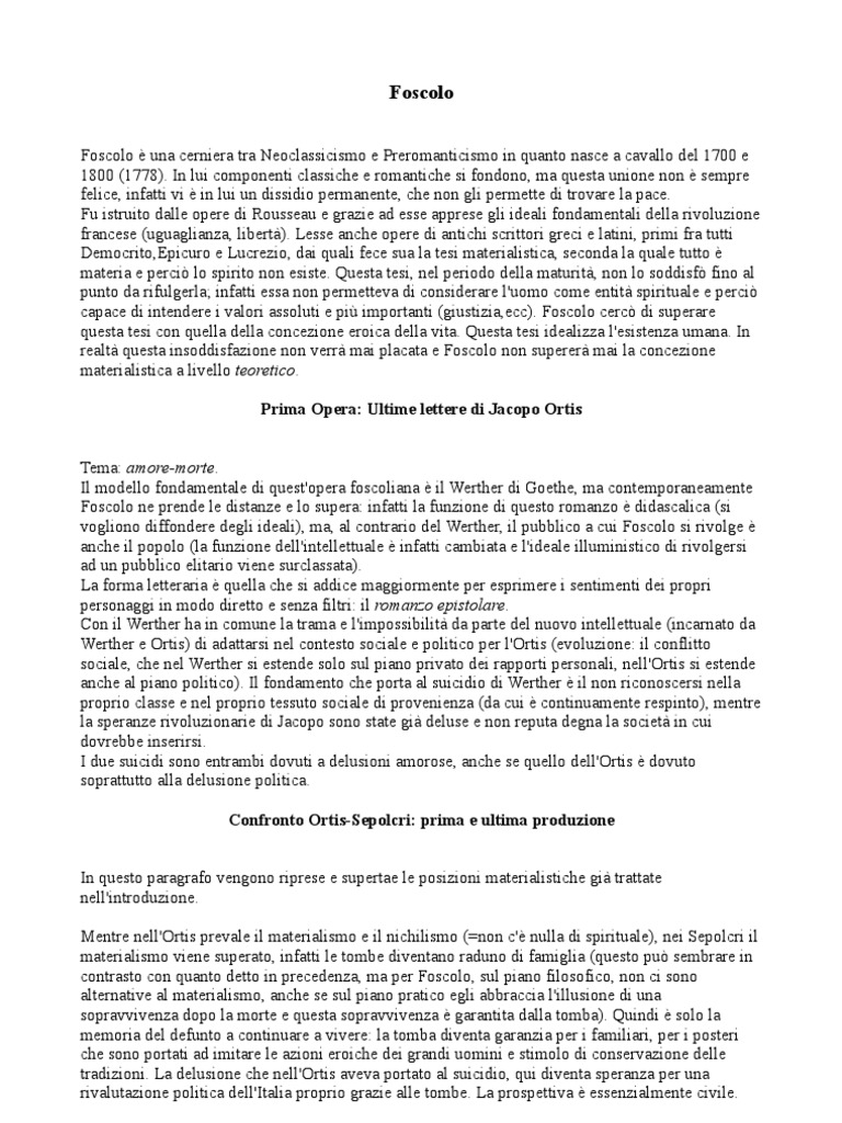 Mentre nell'Ortis prevale il materialismo e il nichilismo (=non c'è nulla di spirituale), nei Sepolcri il