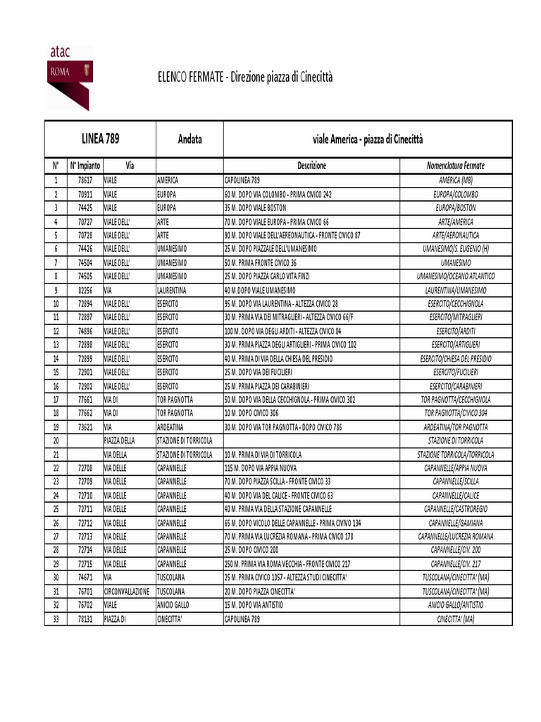 33 78131 PIAZZA DI CINECITTA' CAPOLINEA 789 CINECITTA' (MA)