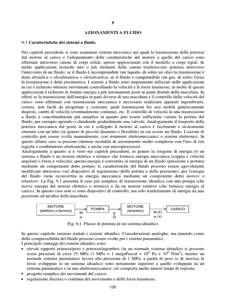 In questo capitolo saranno trattati i sistemi idraulici. Considerazioni analoghe, ma tenendo conto