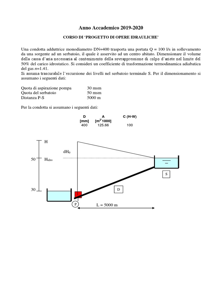 Si assuma trascurabile l’escursione dei livelli nel serbatoio terminale S. Per il dimensionamento si