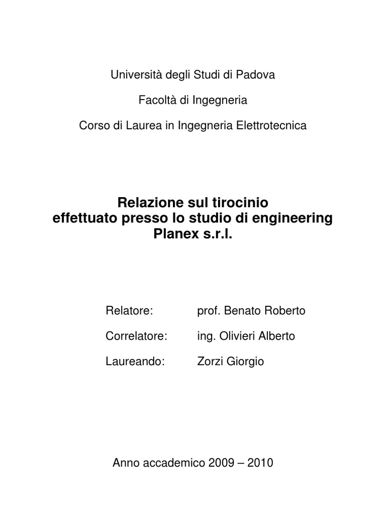 La presente relazione vuole esporre il lavoro effettuato dallo studente Zorzi Giorgio durante un tirocinio di 250 ore