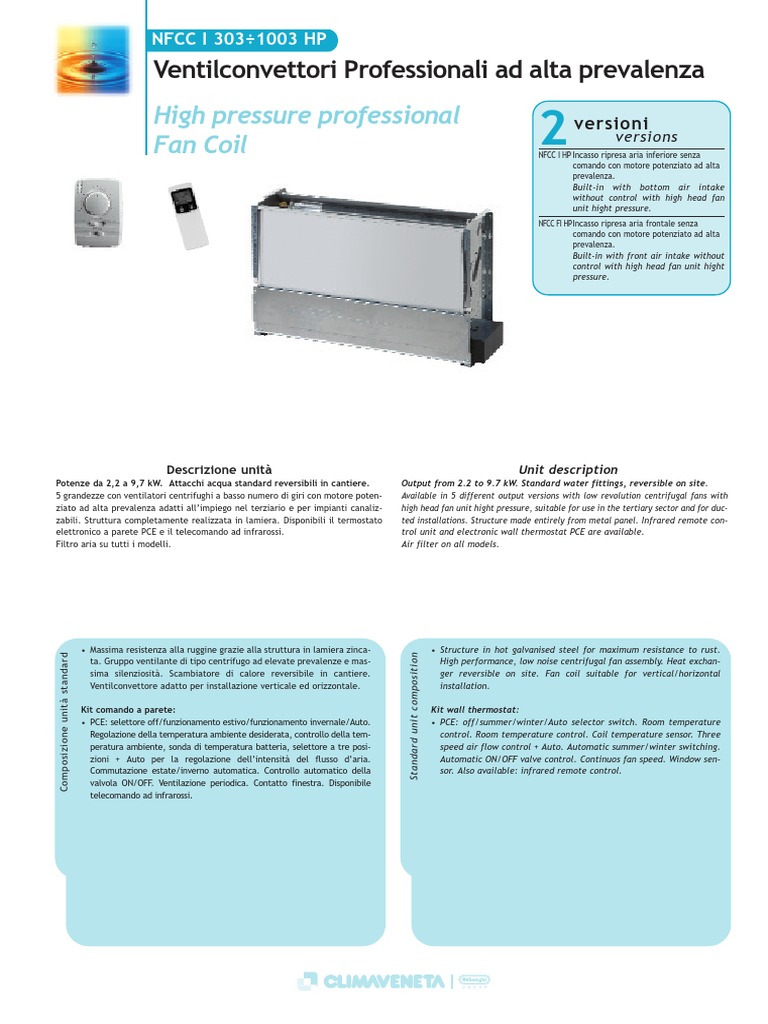 sima silenziosità. Scambiatore di calore reversibile in cantiere. ger reversible on site. Fan coil suitable for vertical/horizontal