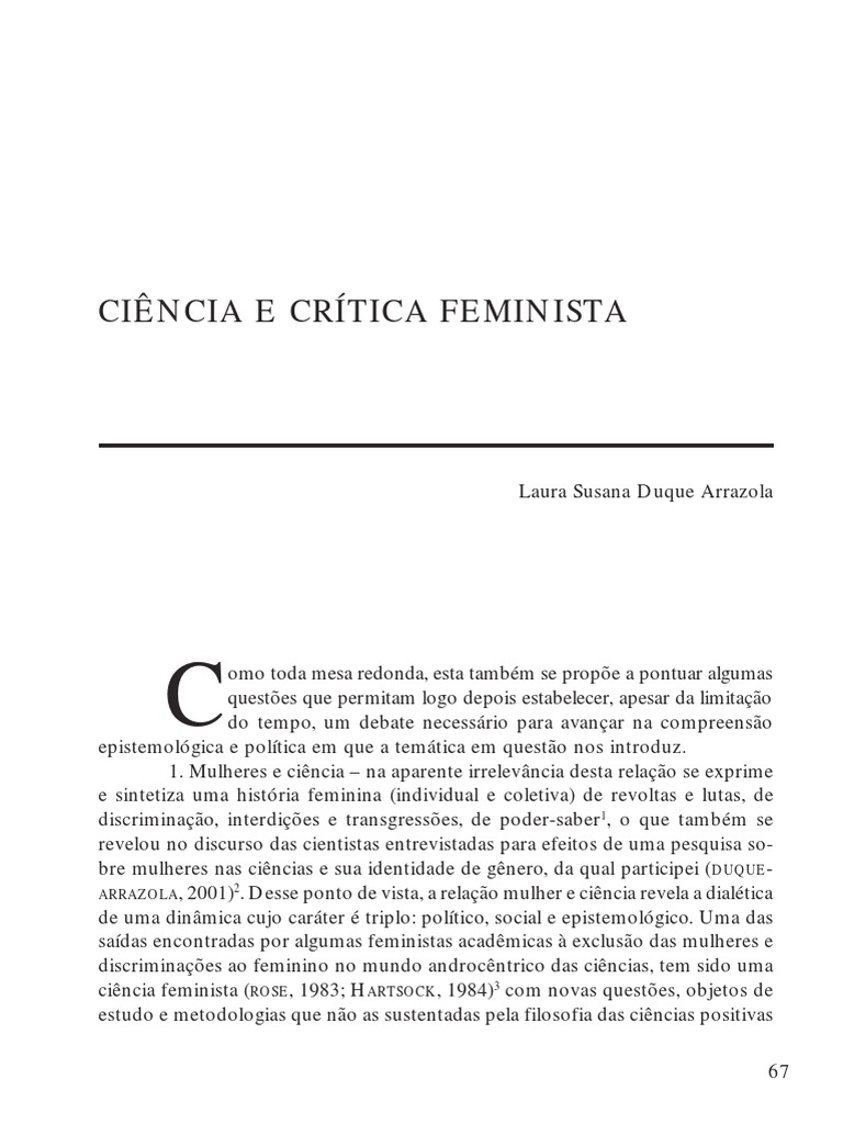 críticas feministas a essa produção científica é que não foi propriamente a expe-