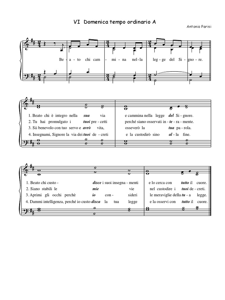 1. Beato chi custo - disce i suoi insegna - menti e lo cerca con tutto il cuore.