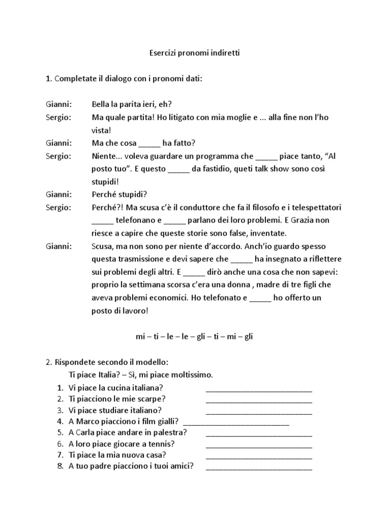 Esercizi pronomi indiretti