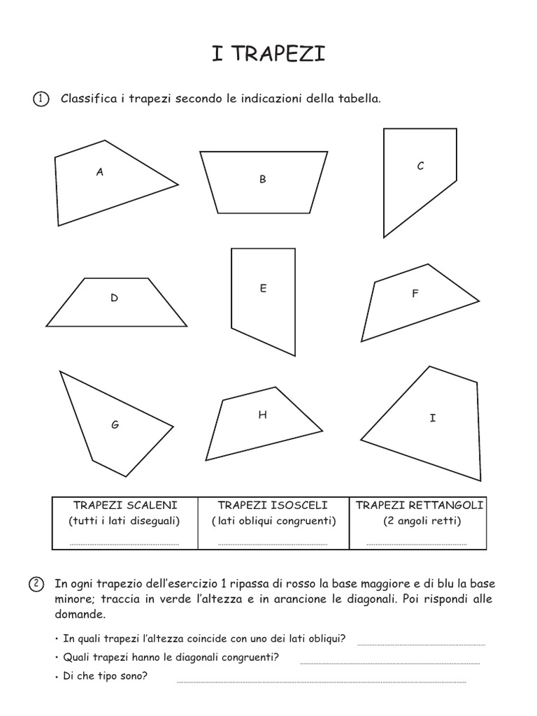 1 Classifica i trapezi secondo le indicazioni della tabella.