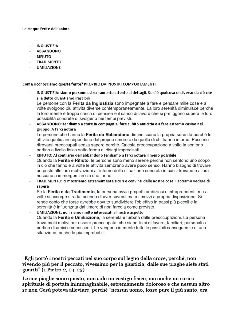 Le cinque ferite dell’anima