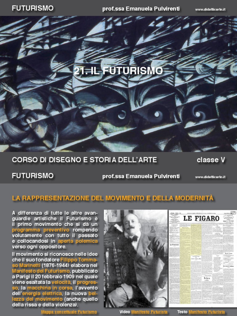 Mappa concettuale Futurismo Video Manifesto Futurista Testo Manifesto Futurista