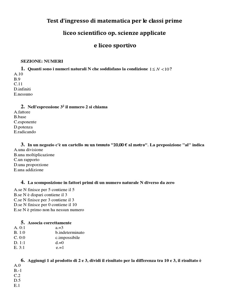 1. Quanti sono i numeri naturali N che soddisfano la condizione 1 N 10 ?