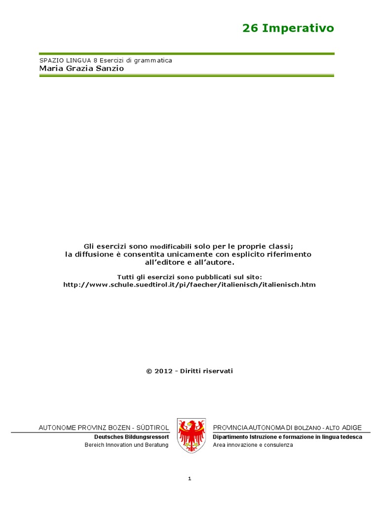 1.1 CONIUGAZIONE DELL’IMPERATIVO