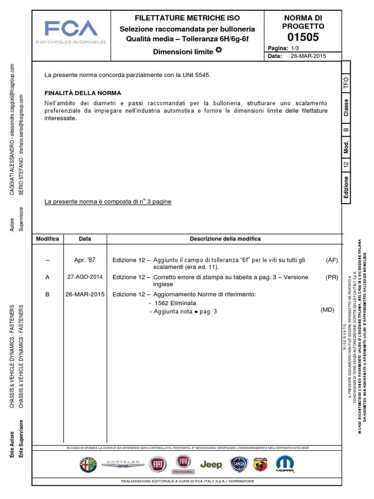 – Apr. ’87 Edizione 12 – Aggiunto il campo di tolleranza “6f” per le viti su tutti gli (AF)