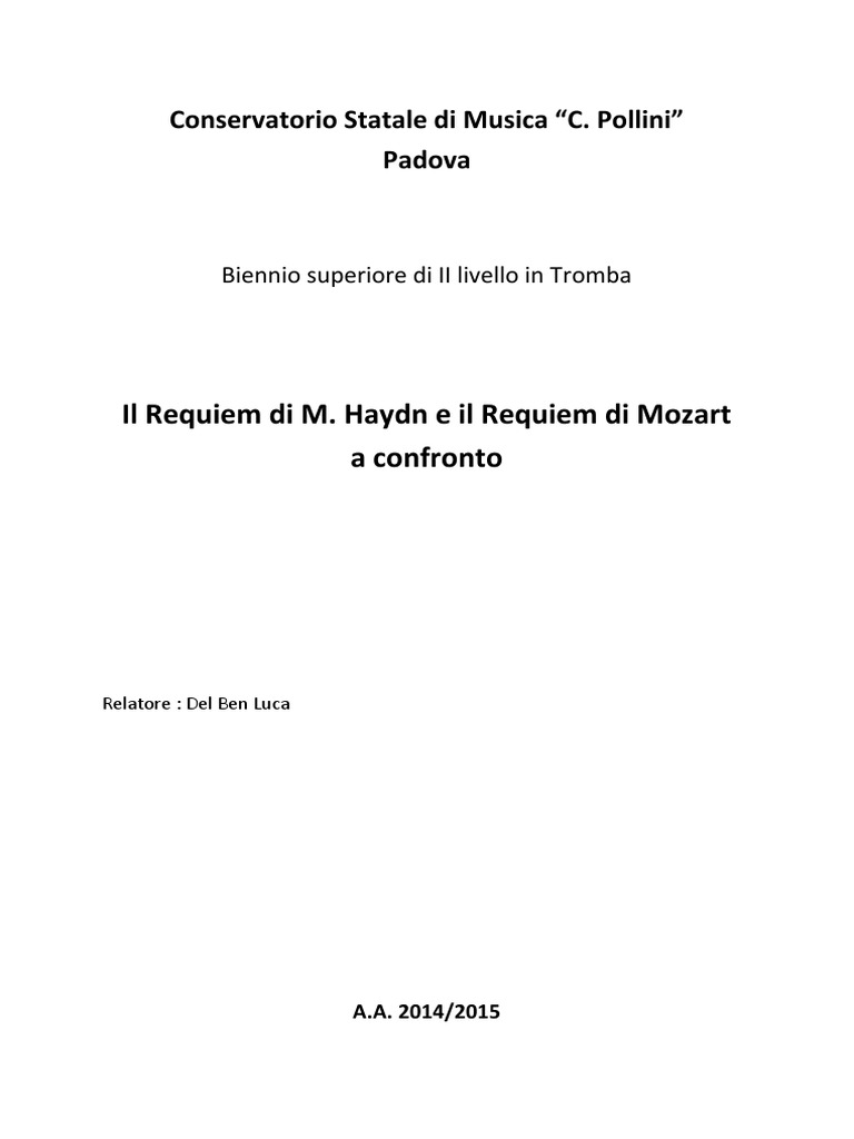 di Michael Haydn (il I tono nella fattispecie) per poi cambiare idea e optare per la scelta del
