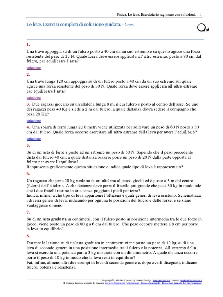 Le leve. Esercizi completi di soluzione guidata. - Lever.