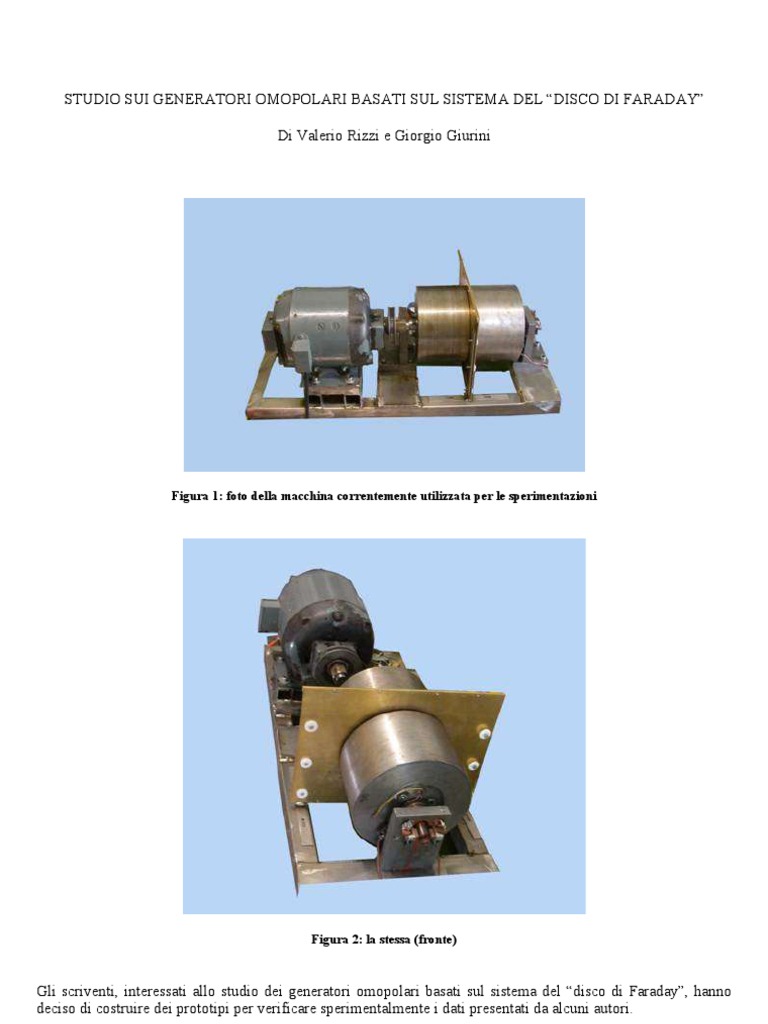 Gli scriventi, interessati allo studio dei generatori omopolari basati sul sistema del “disco di Faraday”, hanno
