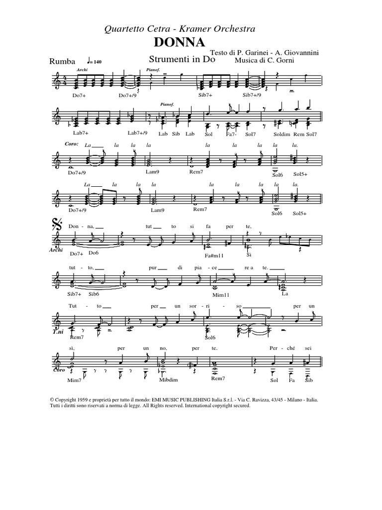 © Copyright 1959 e proprietà per tutto il mondo: EMI MUSIC PUBLISHING Italia S.r.l. - Via C. Ravizza, 43/45 - Milano - Italia.
