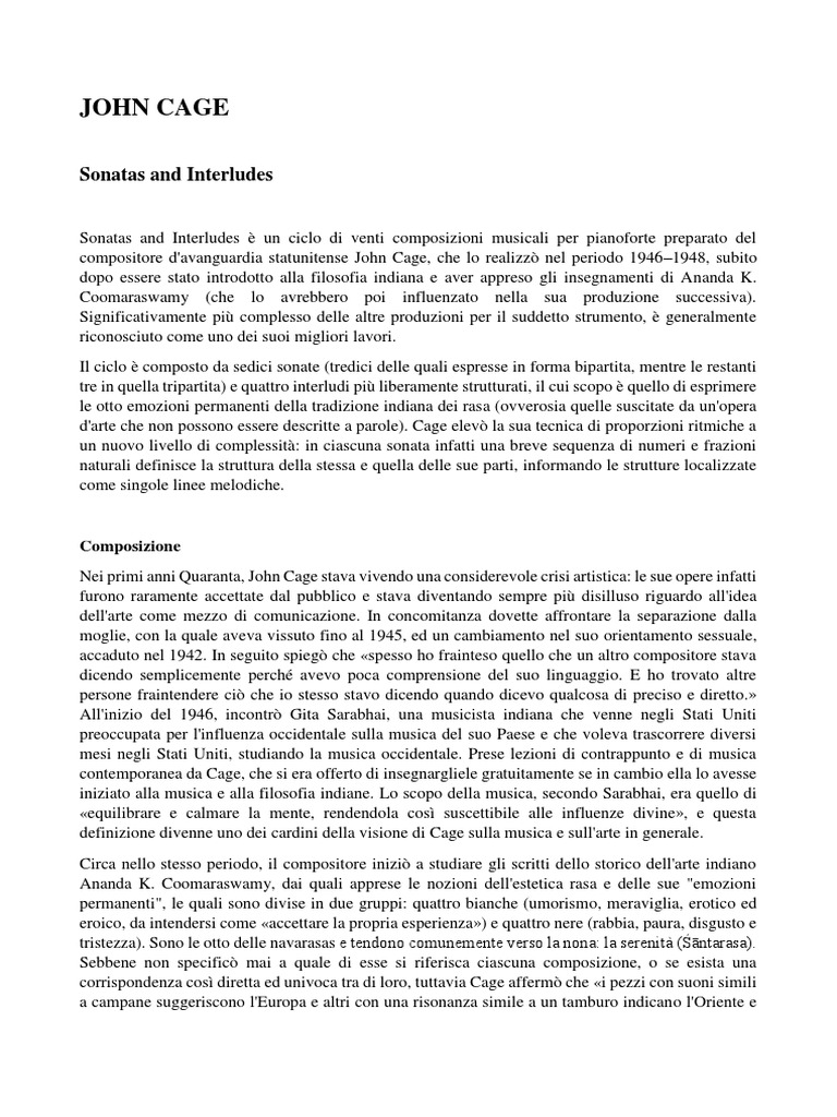 Nel testo che accompagnava la prima registrazione di Sonate and Interludes, Cage scrisse