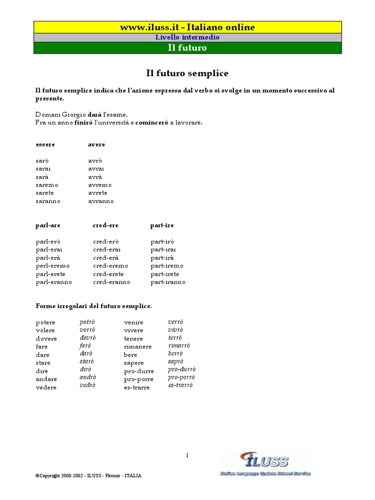 3. (tu) (potere) Potrai uscire solo quando (finire) avrai finito i compiti.