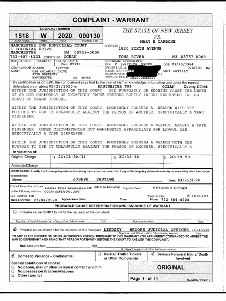‘COMPLAINT -WARRANT (Court Acton)