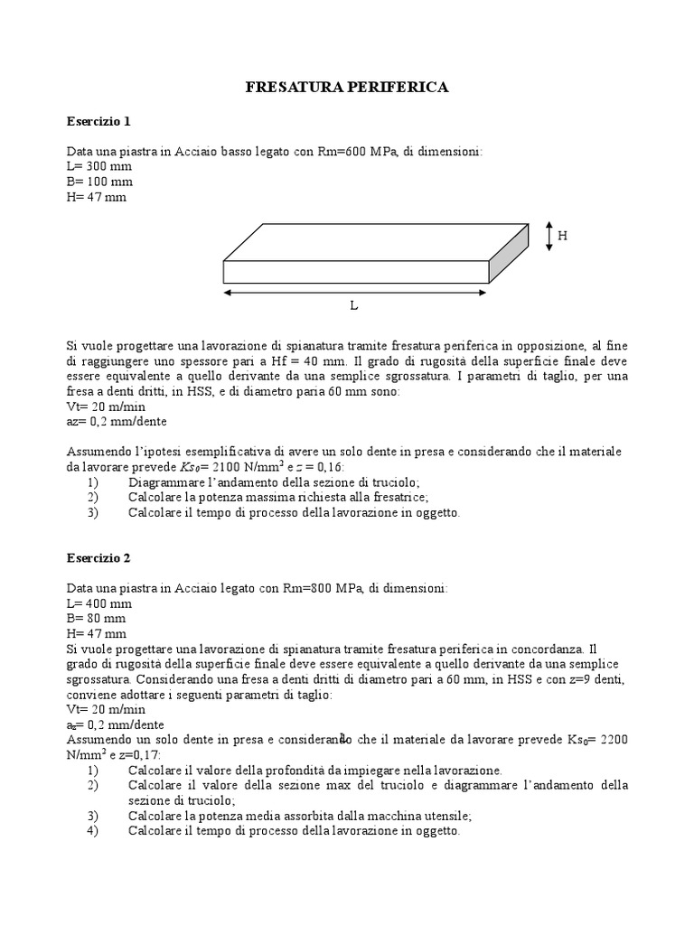 adoperando una fresa cilindrica in acciaio HSS dalle seguenti caratteristiche: D= 100mm, z=18,