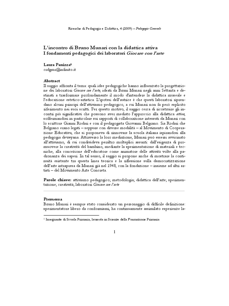 dano alcuni principi dell’attivismo pedagogico, a cui Munari non fa però esplicito