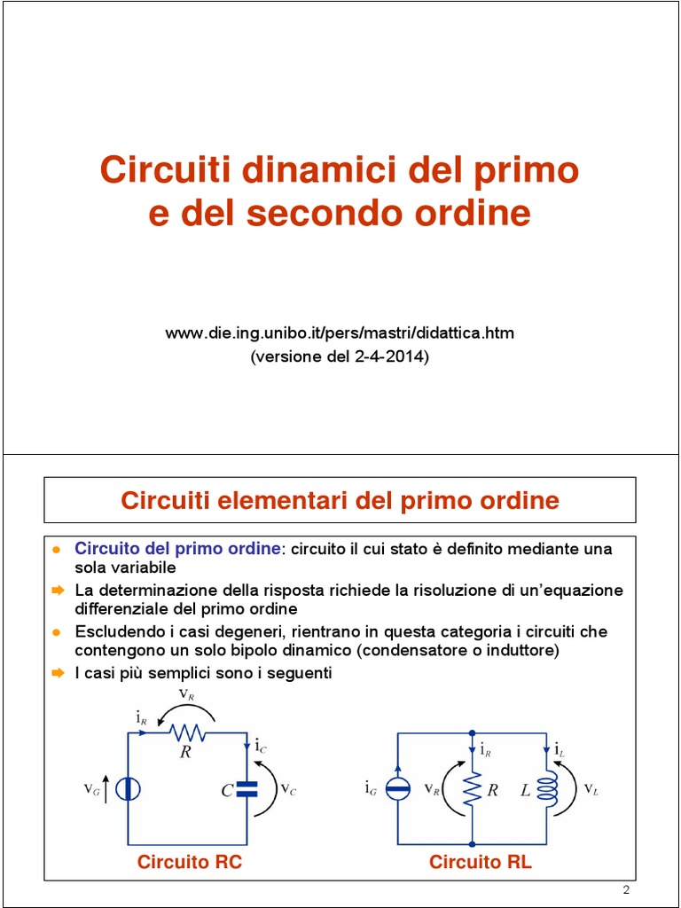● Circuito del primo ordine: circuito il cui stato è definito mediante una