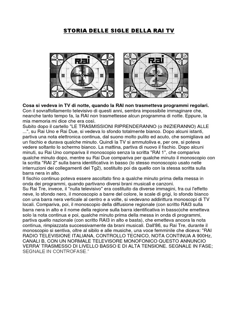 Coloro i quali hanno potuto ammirare la leggendaria sigla della Rai pre/post programmi: