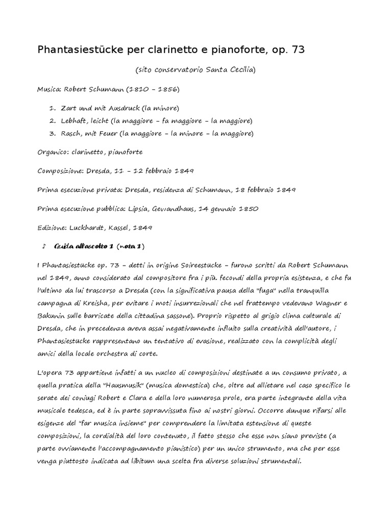 Fantasiestücke Op. 73 di Robert Schumann, articolati nei movimenti:
