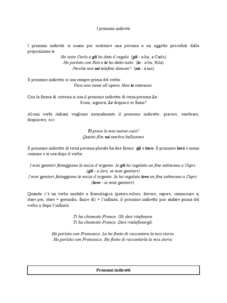 I pronomi indiretti