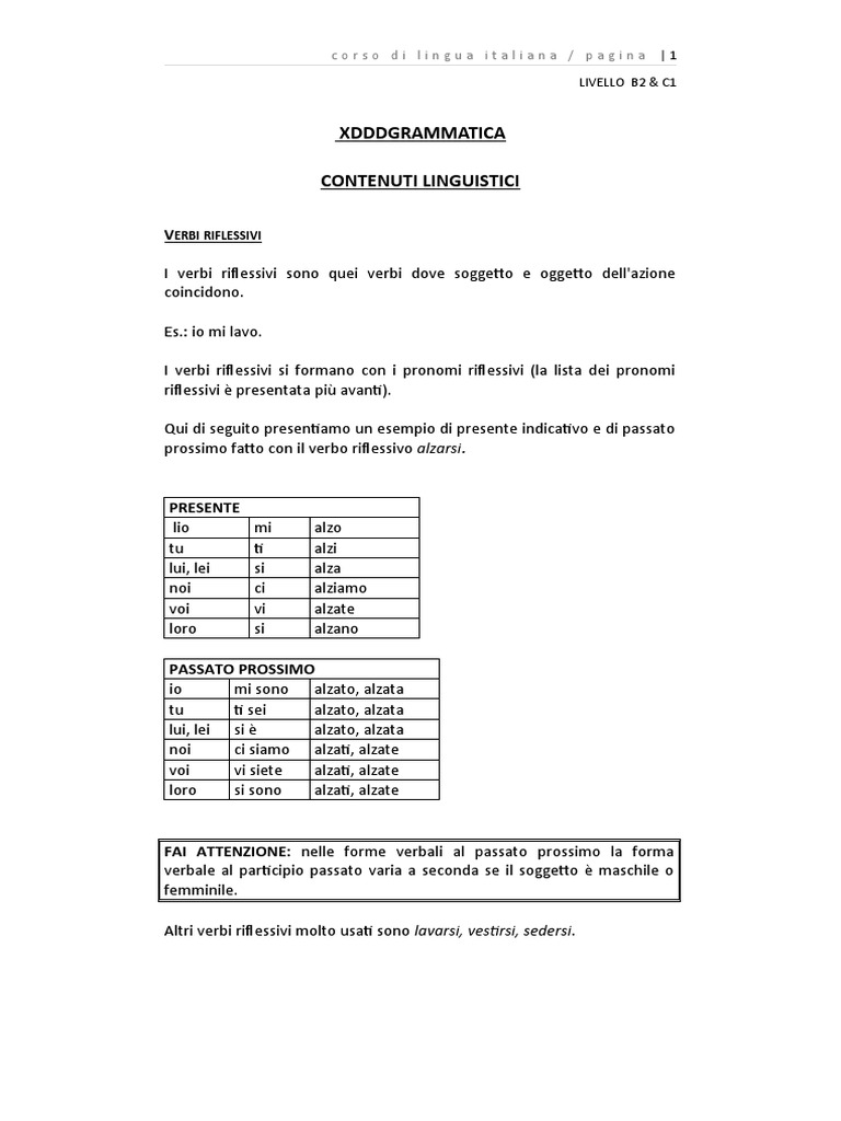 FAI ATTENZIONE: il passato prossimo dei verbi preceduti da un pronome