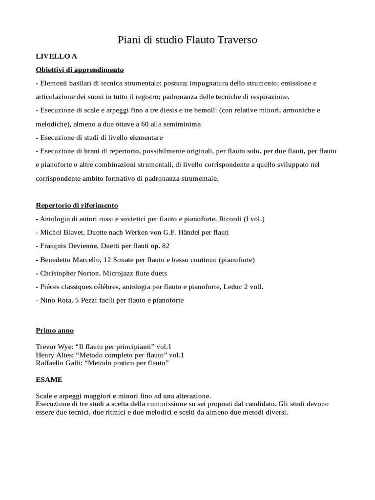 e pianoforte o altre combinazioni strumentali, di livello corrispondente a quello sviluppato nel
