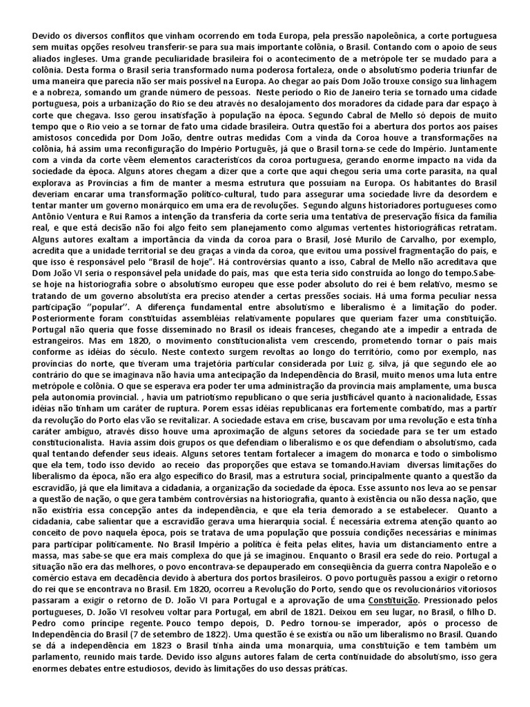 do rei que se encontrava no Brasil. Em 1820, ocorreu a Revolução do Porto, sendo que os revolucionários vitoriosos
