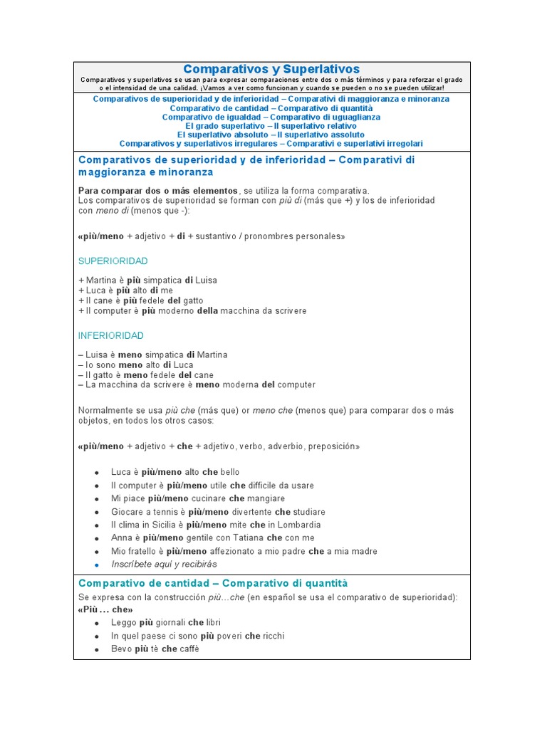 Los comparativos de superioridad se forman con più di (más que +) y los de inferioridad
