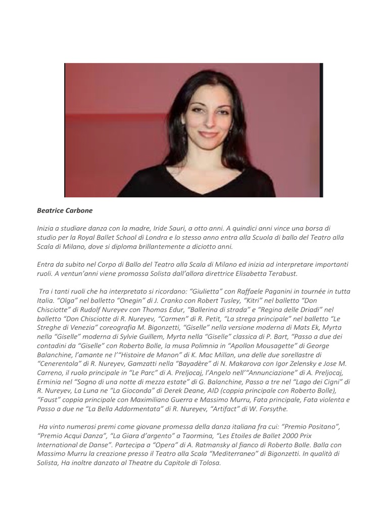 International de Danse”. Partecipa a “Opera” di A. Ratmansky al fianco di Roberto Bolle. Balla con