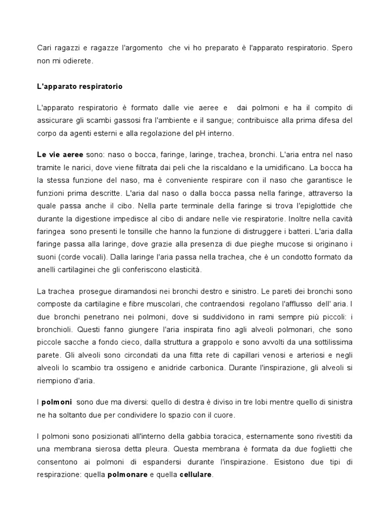 Cari ragazzi e ragazze l'argomento che vi ho preparato è l'apparato respiratorio.